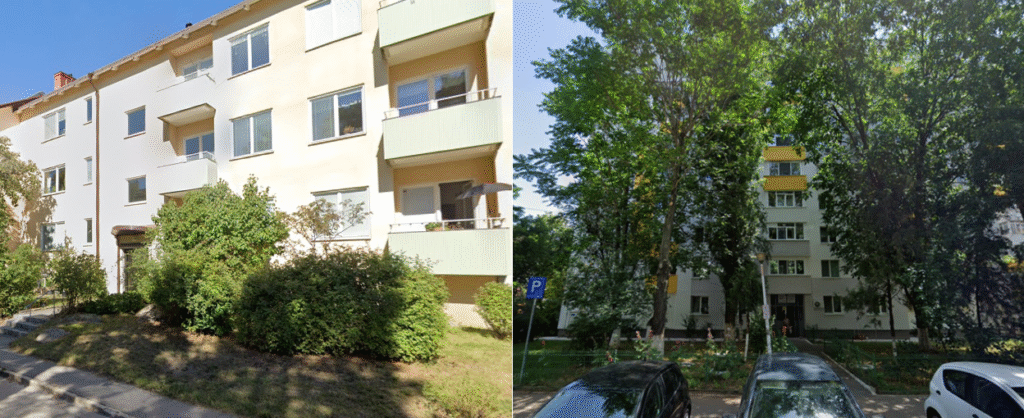 În cartierele suburbane suedeze, gardurile tradiționale sunt înlocuite de garduri vii joase sau lipsesc cu desăvârșire, creând un peisaj deschis și prietenos